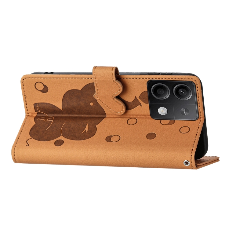 Funda de Cuero con Relieve de Elefante de Dibujos Animados para Redmi Note 13 Pro 5G (Amarillo)
