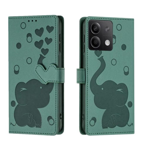 Funda de Cuero con Relieve de Elefante de Dibujos Animados para Redmi Note 13 Pro 5G (Verde)