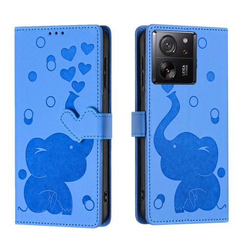 Funda de Cuero con Relieve de Elefante de Dibujos Animados para Xiaomi 13T/13T Pro (Azul)