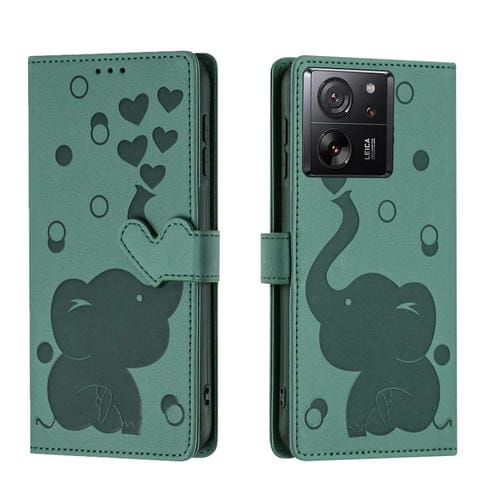 Funda de Cuero con Relieve de Elefante de Dibujos Animados para Xiaomi 13T/13T Pro (Verde)