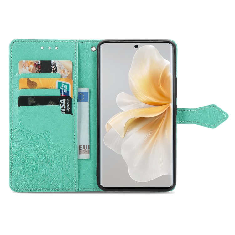 Funda de Cuero Nxtpaper con Relieve Flor de Mandala para TCL 50 Pro (Verde)