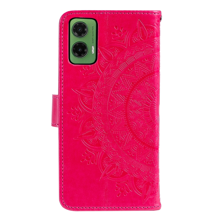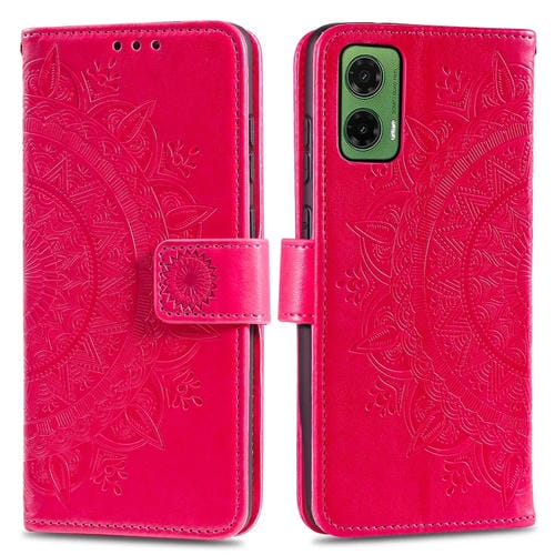 Funda de Cuero con Relieve de Flor de Tótem para Motorola Moto G35 con Cordón (Rojo)