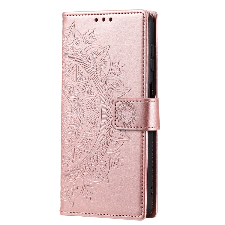 Funda Cuero Samsung Galaxy A16 5G Relieve Flor Tótem (Oro Rosa)