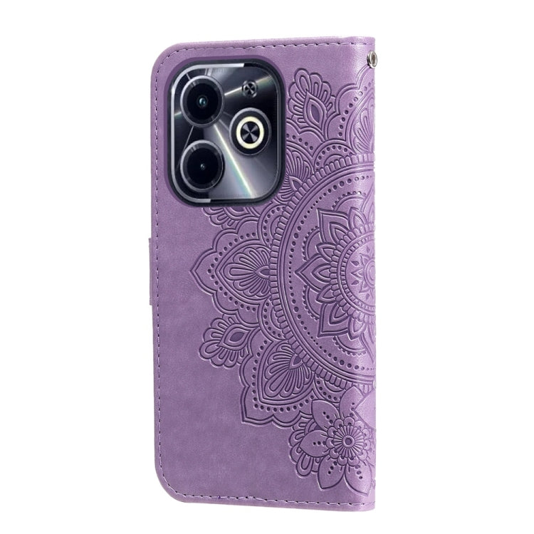Funda de Cuero con Relieve Flores de Siete Pétalos para Infinix Hot 40I (Morado Claro)