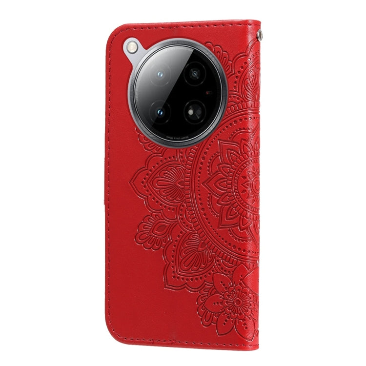 Funda de Cuero con Relieve Flores Siete Pétalos para Infinix Zero 40 4G/5G (Rojo)