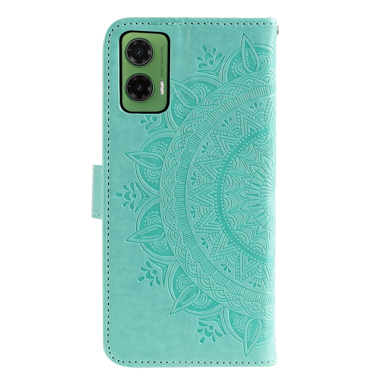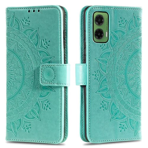 Funda de Cuero con Relieve de Flores para Motorola Moto G35 con Cordón (Verde)
