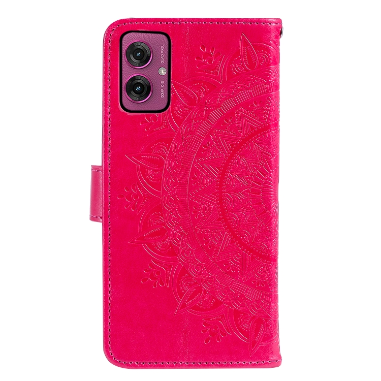 Funda de Cuero con Relieve de Flores para Motorola Moto G55 con Cordón (Rojo)