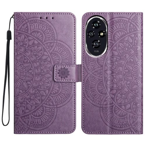 Funda de Cuero con Relieve Floral para Honor 200 (Morado)