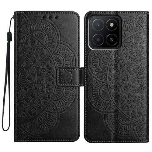 Funda de Cuero con Relieve Floral para Honor X5B (Negra)