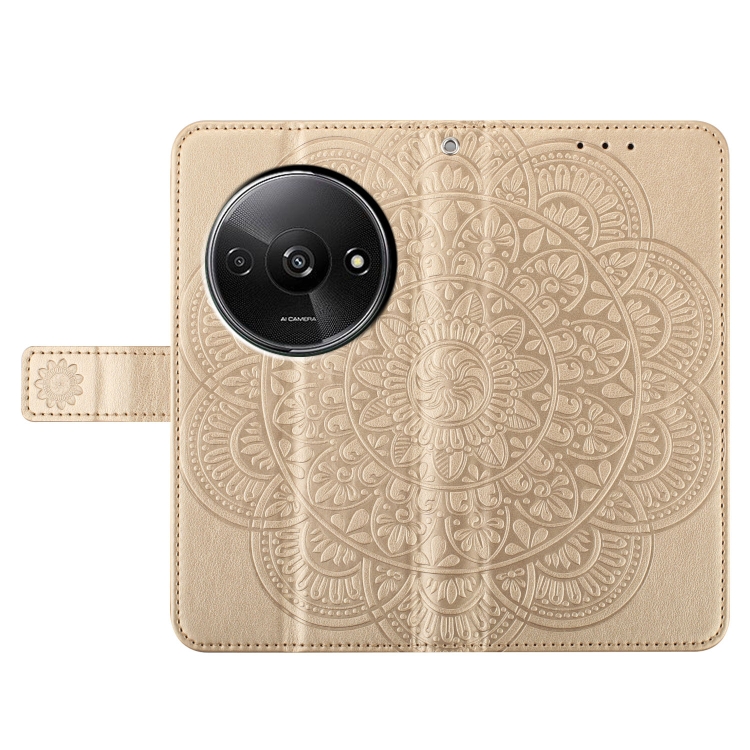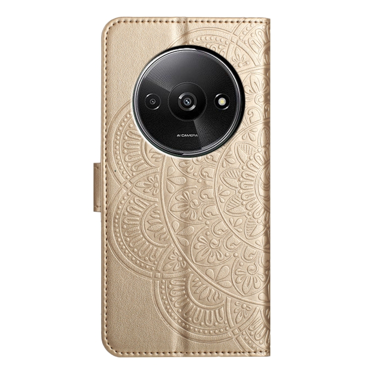 Funda de Cuero con Relieve Floral para Redmi A3 (Dorada)