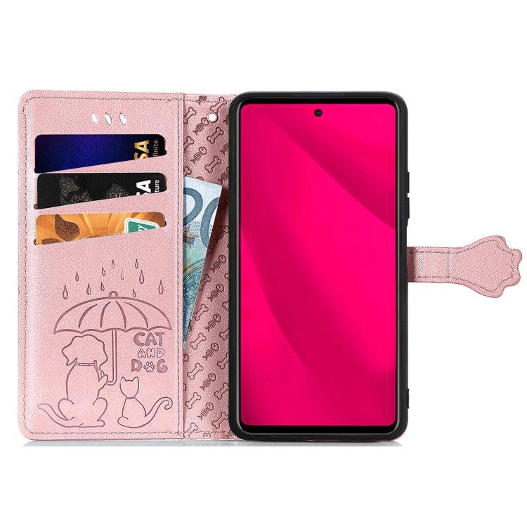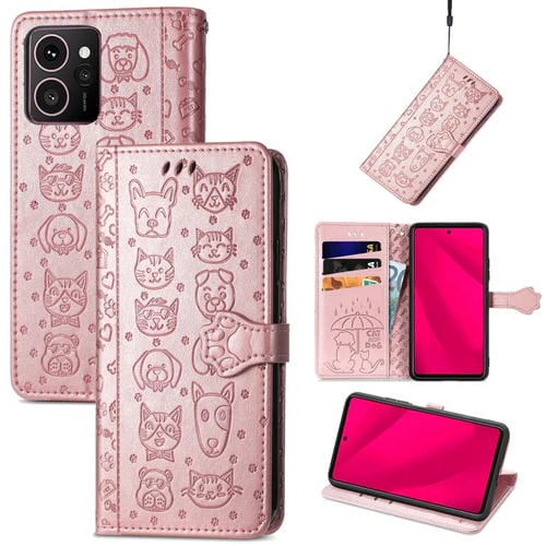 Funda de Cuero con Relieve Gato y Perro para Teléfono HMD Skyline (Oro Rosa)