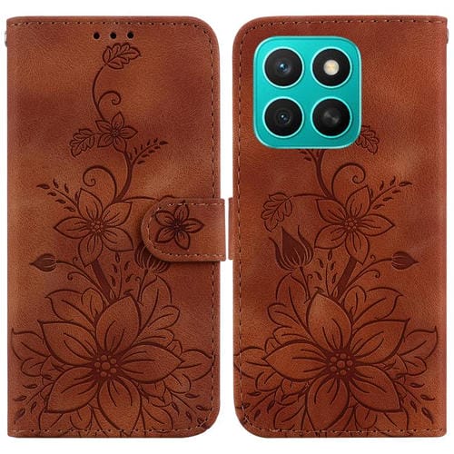 Funda de Cuero con Relieve de Lirio para Honor X8C 4G (Marrón)