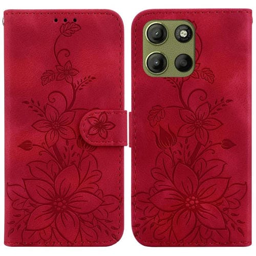 Funda de Cuero con Relieve de Lirio para Motorola Moto G15 (Rojo)