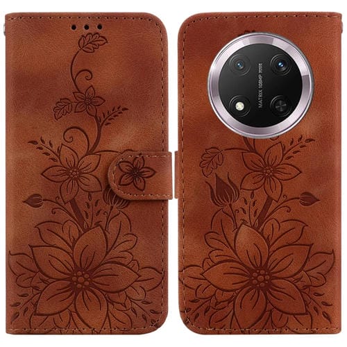 Funda de Cuero con Relieve de Lirio para Honor X9C (Marrón)