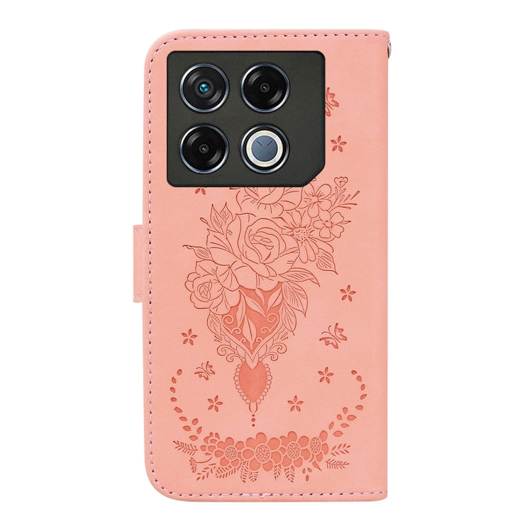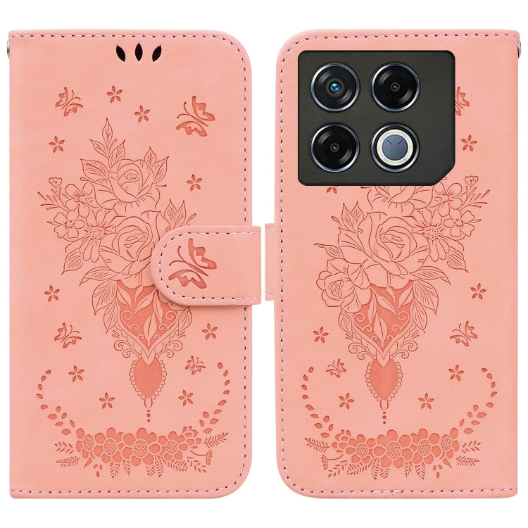 Funda de Cuero con Relieve Mariposa y Rosa para Infinix GT 20 Pro (Rosa)