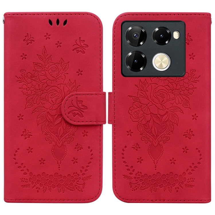 Funda de Cuero con Relieve Mariposa y Rosa para Infinix Note 40 Pro+ (Rojo)