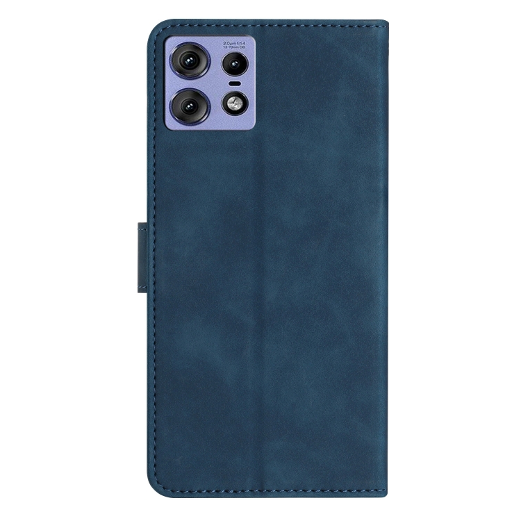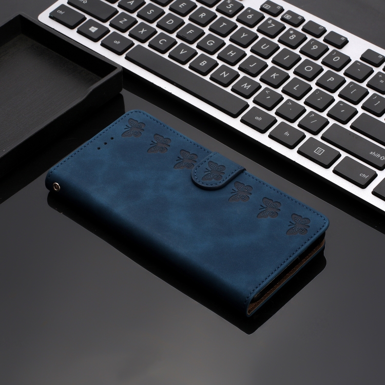 Funda de Cuero con Relieve de Siete Mariposas para Motorola Edge 50 Pro (Azul)