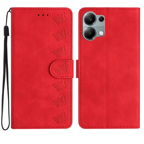 Funda de Cuero con Relieve de Siete Mariposas para Redmi Note 13 Pro 4G (Rojo)