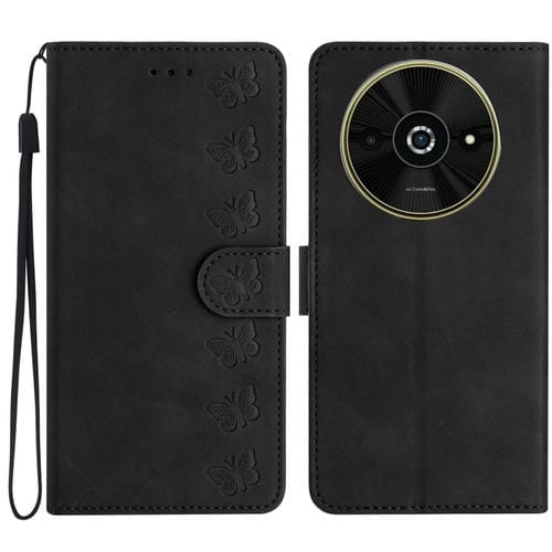 Funda de Cuero con Relieve de Siete Mariposas para Xiaomi Poco C61 (Negra)