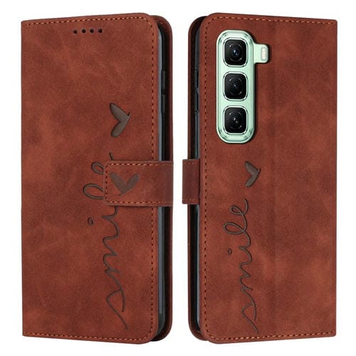 Funda de Cuero con Relieve Corazón para Infinix Hot 50 4G (Marrón)