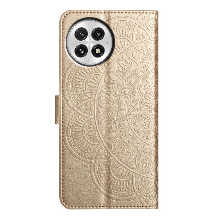 Funda de Cuero con Relieve Floral para OnePlus 13 (Dorada)