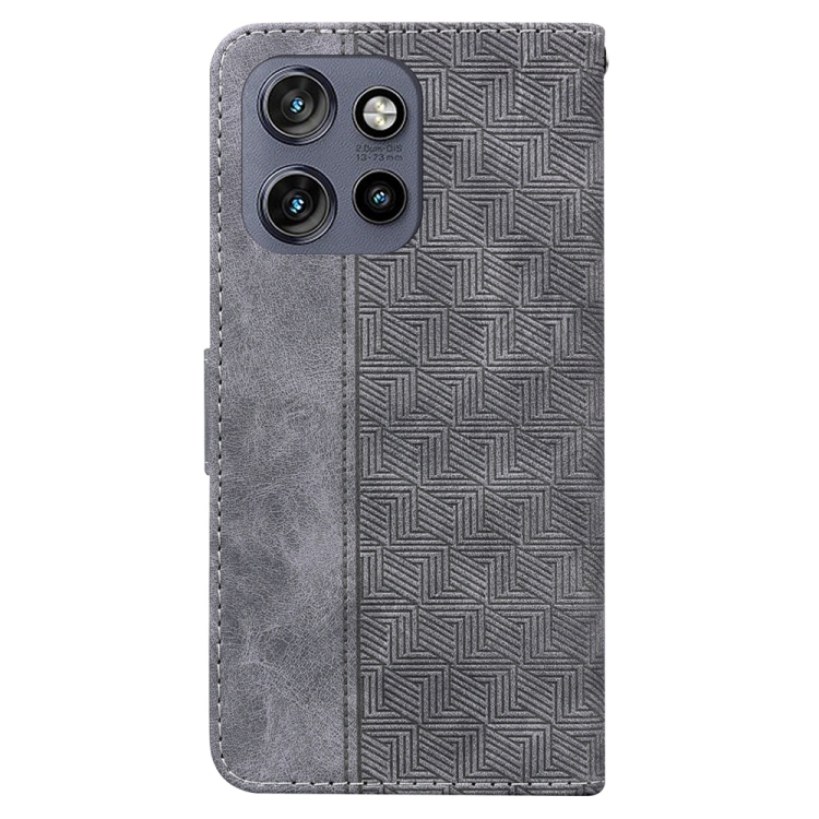 Funda de Cuero con Relieve Geométrico para Motorola Edge 50 Neo 5G (Gris)