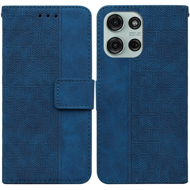 Funda de Cuero con Relieve Geométrico para Motorola Moto G75 5G (Azul)