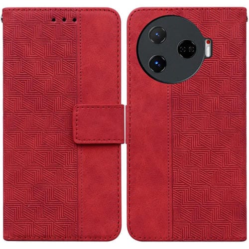 Funda de Cuero con Relieve Geométrico para Tecno Camon 30 Pro Cl8 (Rojo)