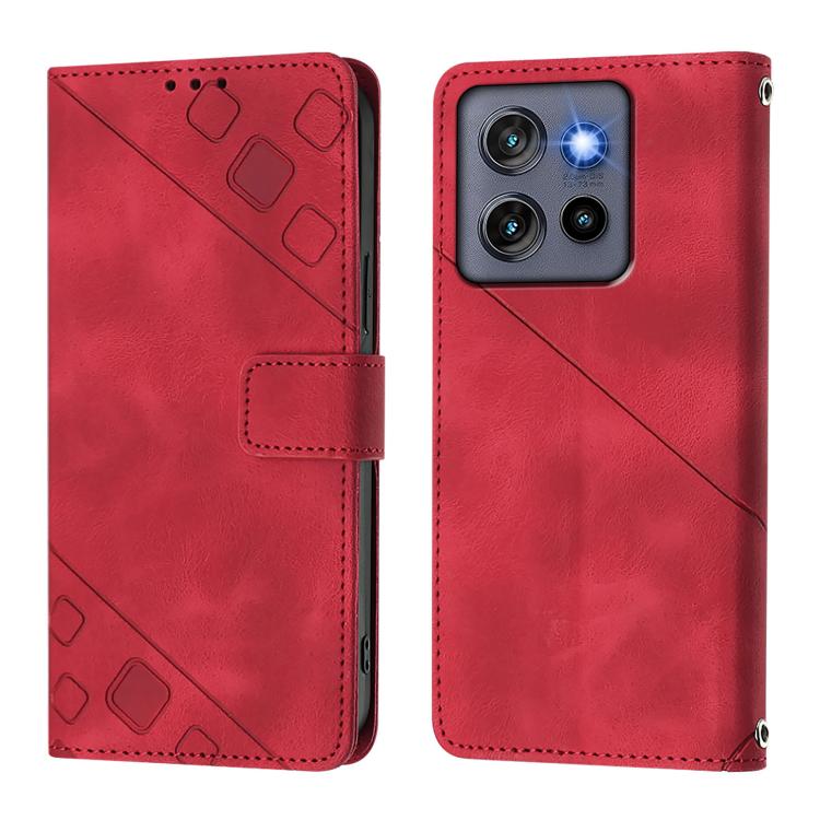 Funda de Cuero con Relieve para Motorola Moto G Stylus 5G 2025 con Tacto de Piel (Rojo)