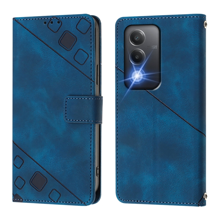 Funda de Cuero con Relieve para Teléfono Oppo A80 5G Versión UE (Azul)
