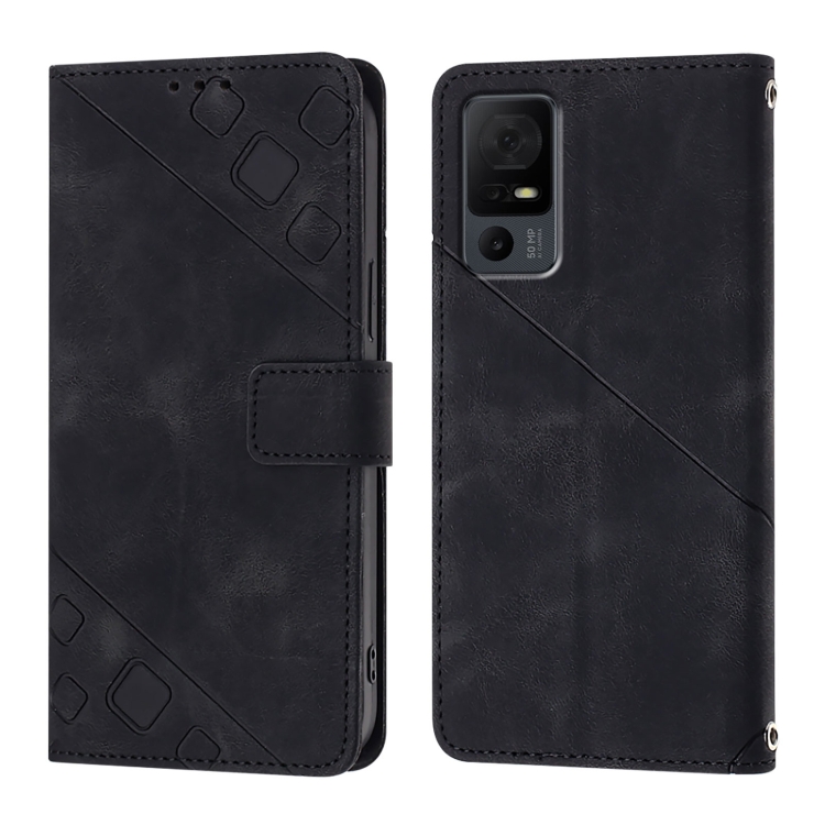 Funda de Cuero con Relieve para Teléfono TCL 50 Le 5G (Negra)