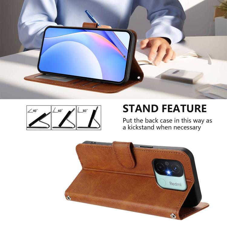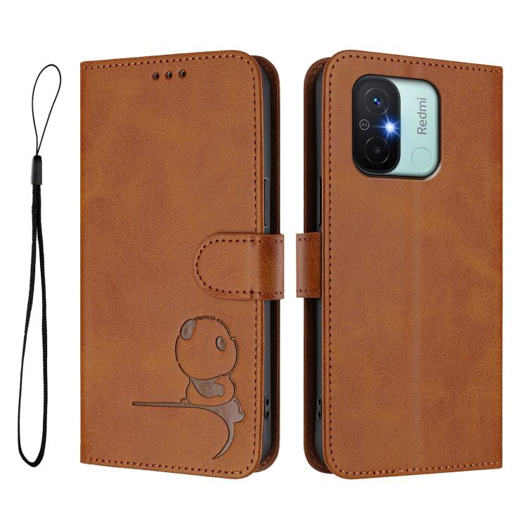 Funda de cuero con relieve RFID y cordón para Redmi 11A / Xiaomi Poco C55 (marrón)