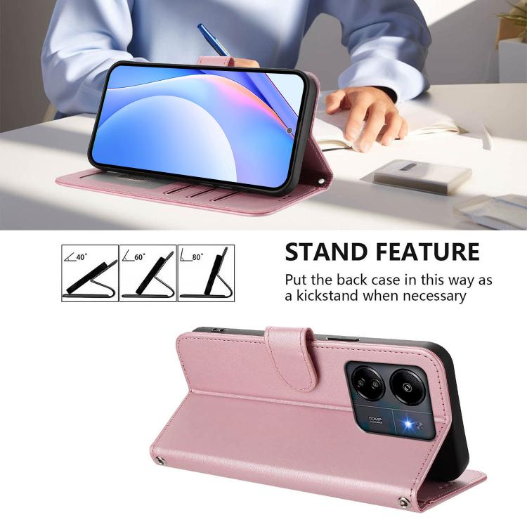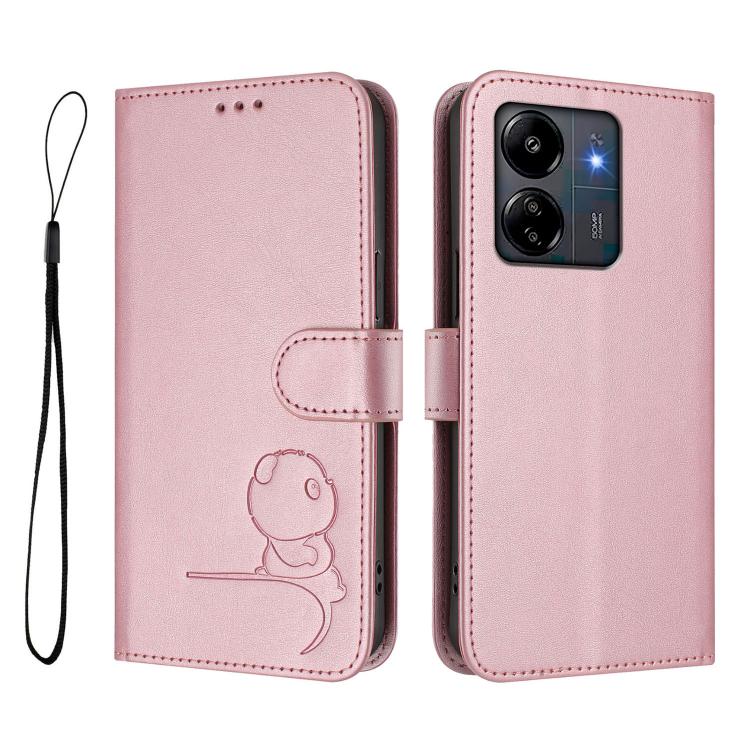 Funda de cuero con relieve RFID y cordón para Redmi 13C 4G / 5G / Poco C65 (rosa)