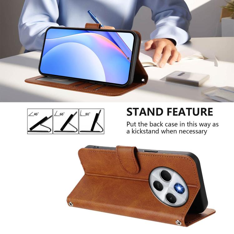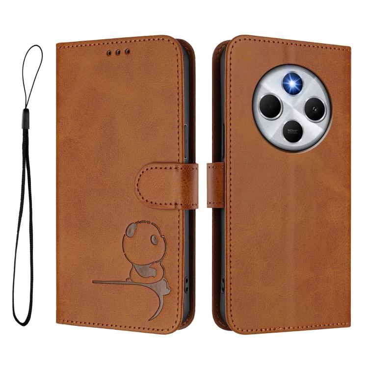 Funda de cuero con relieve RFID y cordón para Redmi 14C 4G / 14R 5G / A4 5G (marrón)
