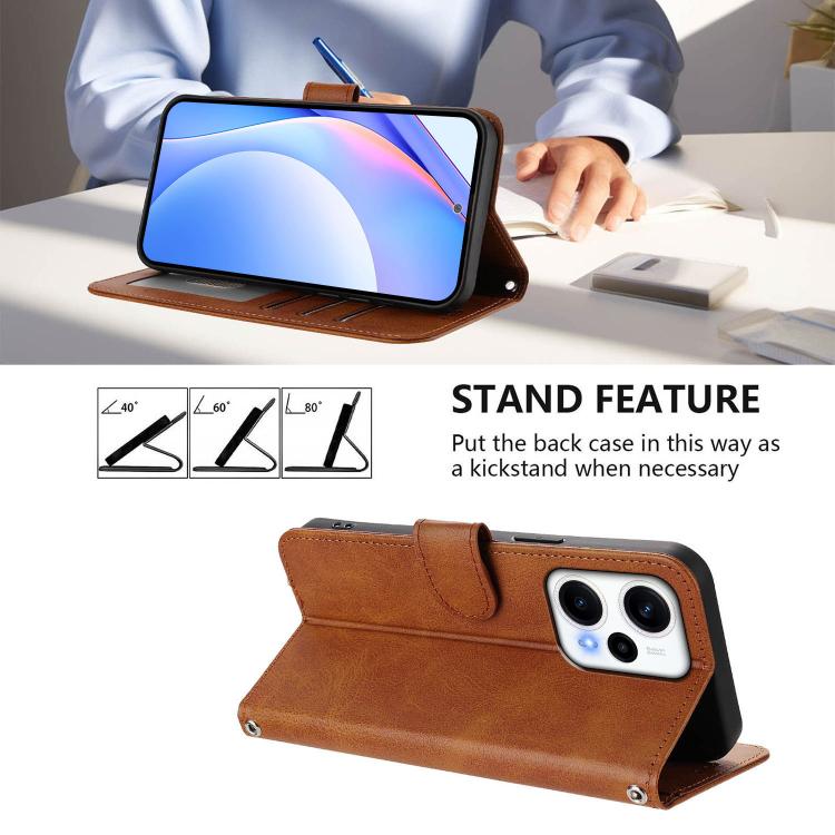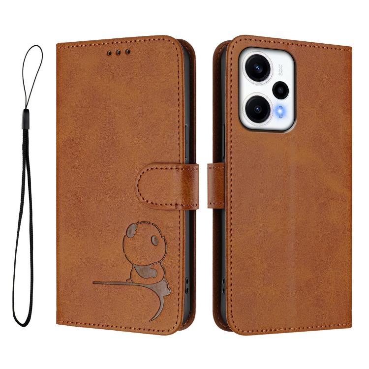 Funda de cuero con relieve RFID y cordón para Redmi Note 12 Turbo y Xiaomi Poco F5 (marrón)