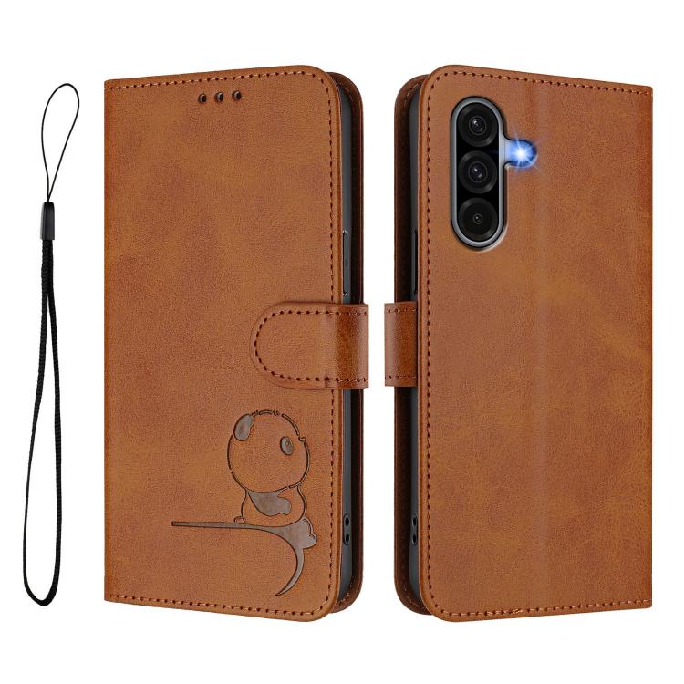 Funda de cuero con relieve RFID y cordón para Samsung Galaxy A56 5G / A36 5G (marrón)