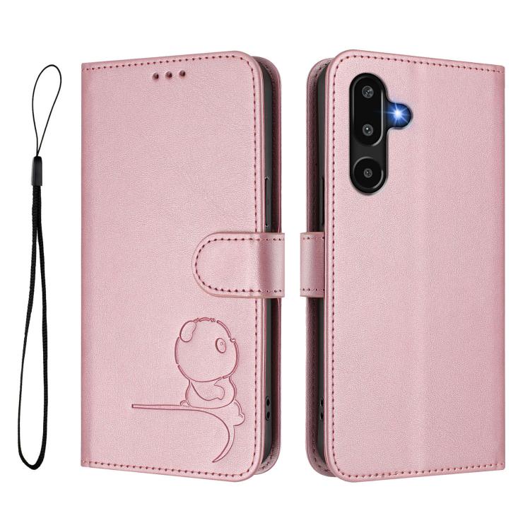 Funda de cuero con relieve RFID y cordón para Samsung Galaxy F16 5G / M16 5G (rosa)