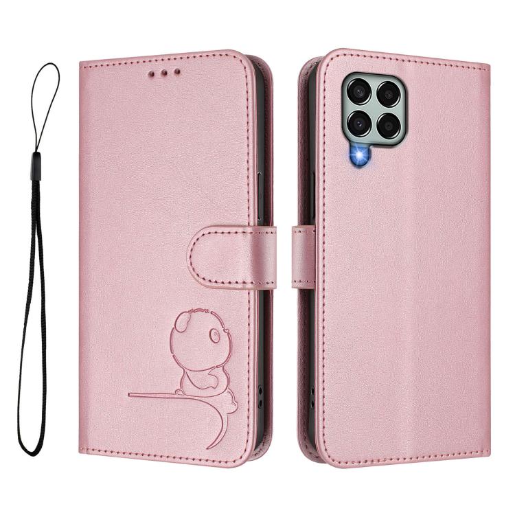 Funda de cuero con relieve RFID y cordón para Samsung Galaxy M33 5G (rosa)