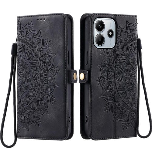 Funda de Cuero con Relieve Totem para Xiaomi Redmi Note 14 5G (Negro)