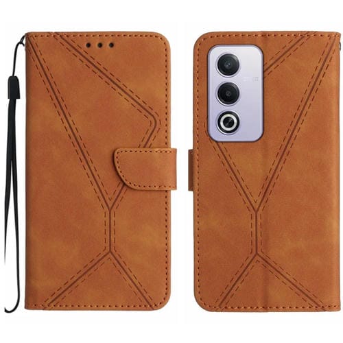 Funda de Cuero con Relieve y Costuras para Oppo A3 Pro 5G India/K12X 5G Global (Marrón)