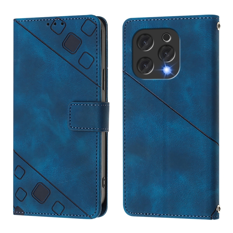 Funda de Cuero con Relieve y Tacto de Piel para Doogee N55 Plus (Azul)
