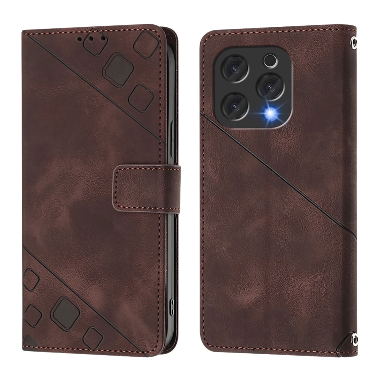 Funda de Cuero con Relieve y Tacto de Piel para Doogee N55 Plus (Marrón)