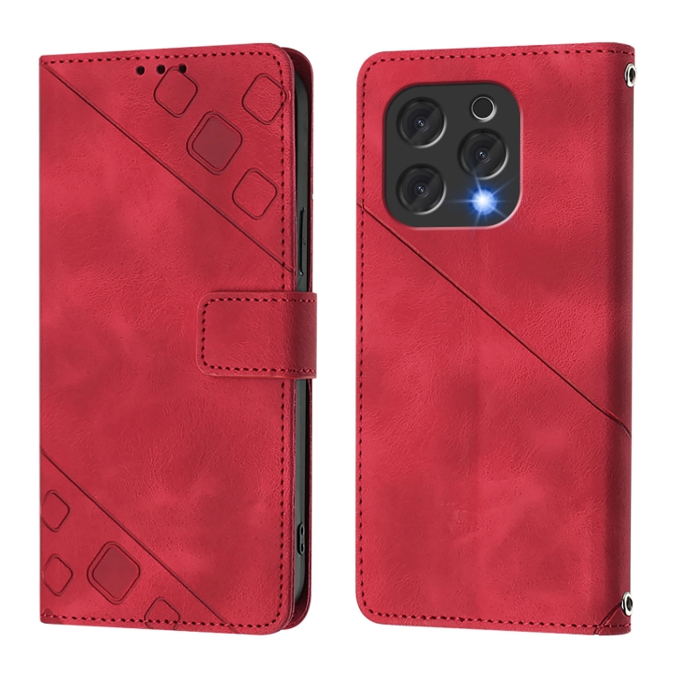 Funda de Cuero con Relieve y Tacto de Piel para Doogee N55 Plus (Roja)