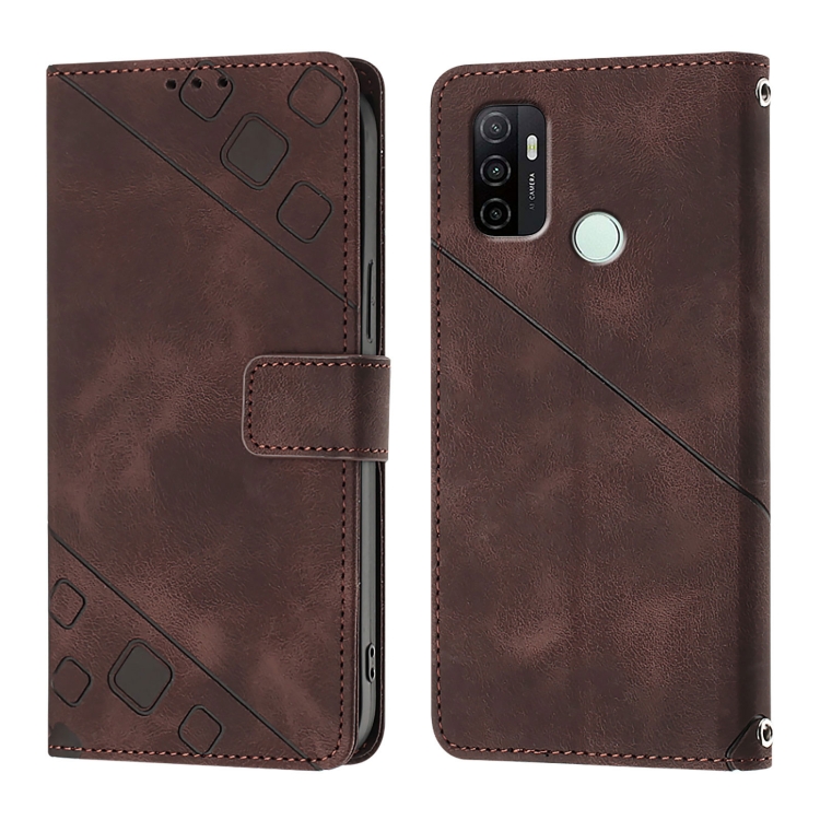 Funda de Cuero con Relieve y Tacto de Piel para Oppo A32 2020 4G/A53 2020 4G (Marrón)