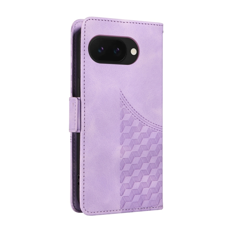 Funda de Cuero con Rombos en Relieve y Estrellas para Google Pixel 9A (Morado)