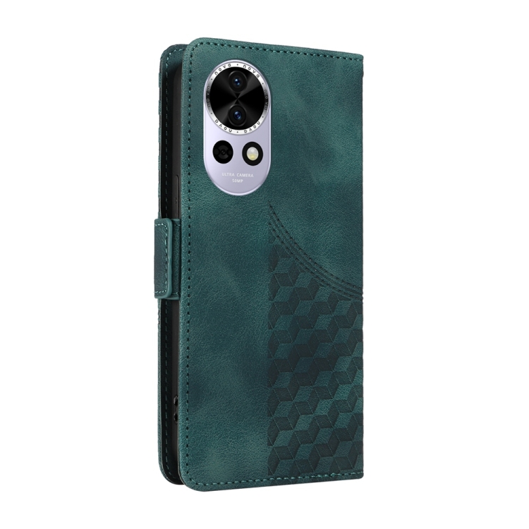 Funda de Cuero con Rombos En Relieve y Estrellas para Huawei Nova 13/Nova 12 (Verde)