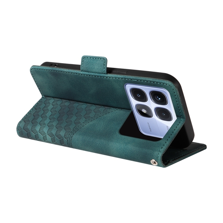 Funda de Cuero con Rombos En Relieve y Estrellas para Redmi K70 Ultra (Verde)