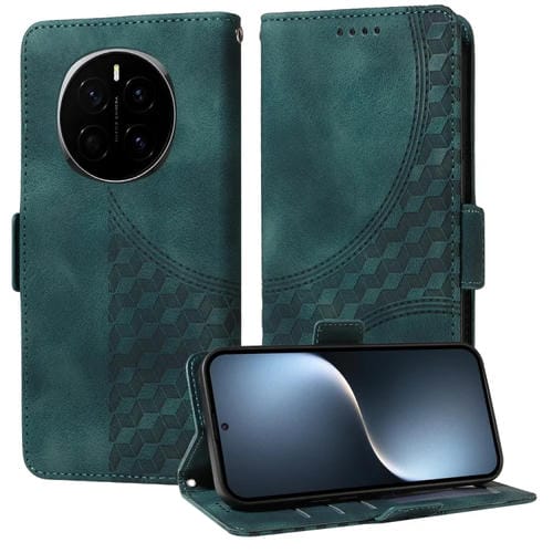 Funda de Cuero para Teléfono Honor Magic7 con Rombos y Estrellas en Relieve (Verde)