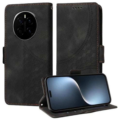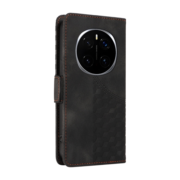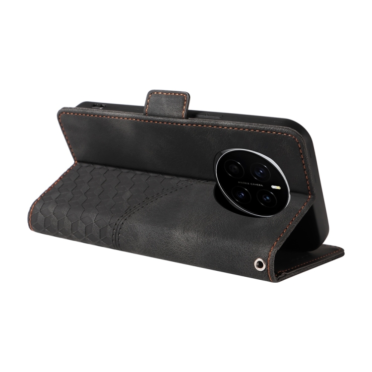 Funda de Cuero para Honor Magic7 Pro con Rombos y Estrellas en Relieve (Negra)