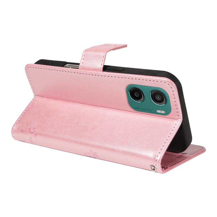 Funda de Cuero con Tapa para Motorola Moto G05 con Diseño Árbol y Gato (Oro Rosa)
